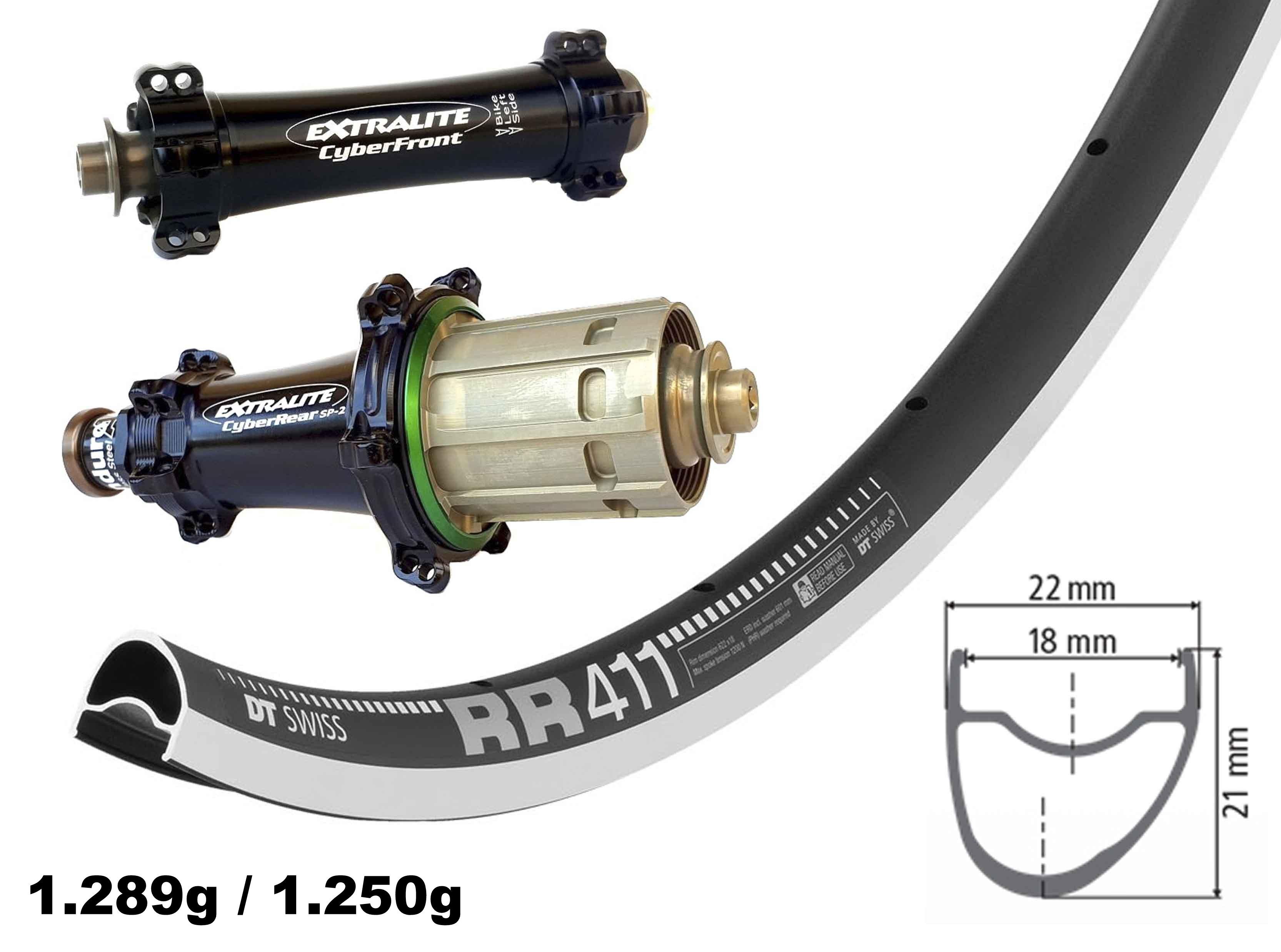 DT Swiss RR 411 + Extralite CyberFront SP-X / CyberRear SP-2